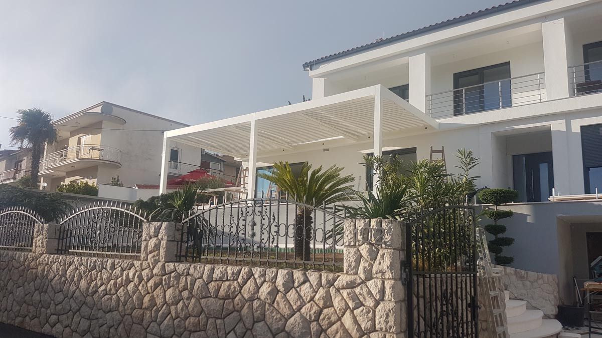 Elegantna bioklimatska pergola krasi teraso apartmaja na Hrvaškem in se popolnoma ujema z mediteranskim značajem objekta. Izvedena je v čudoviti beli barvi (RAL 9010), ki prostoru doda občutek svežine, odprtosti in lahkotne elegance.