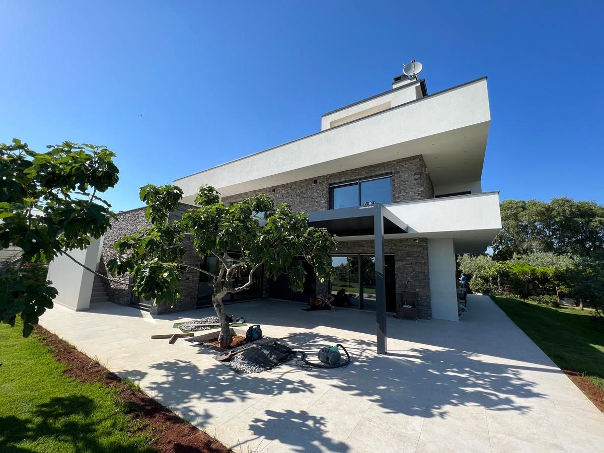 Elegantna bioklimatska pergola na terasi sodobne novogradnje na Hrvaškem predstavlja čudovit arhitekturni element, ki estetsko in funkcionalno dopolnjuje zunanji prostor objekta.