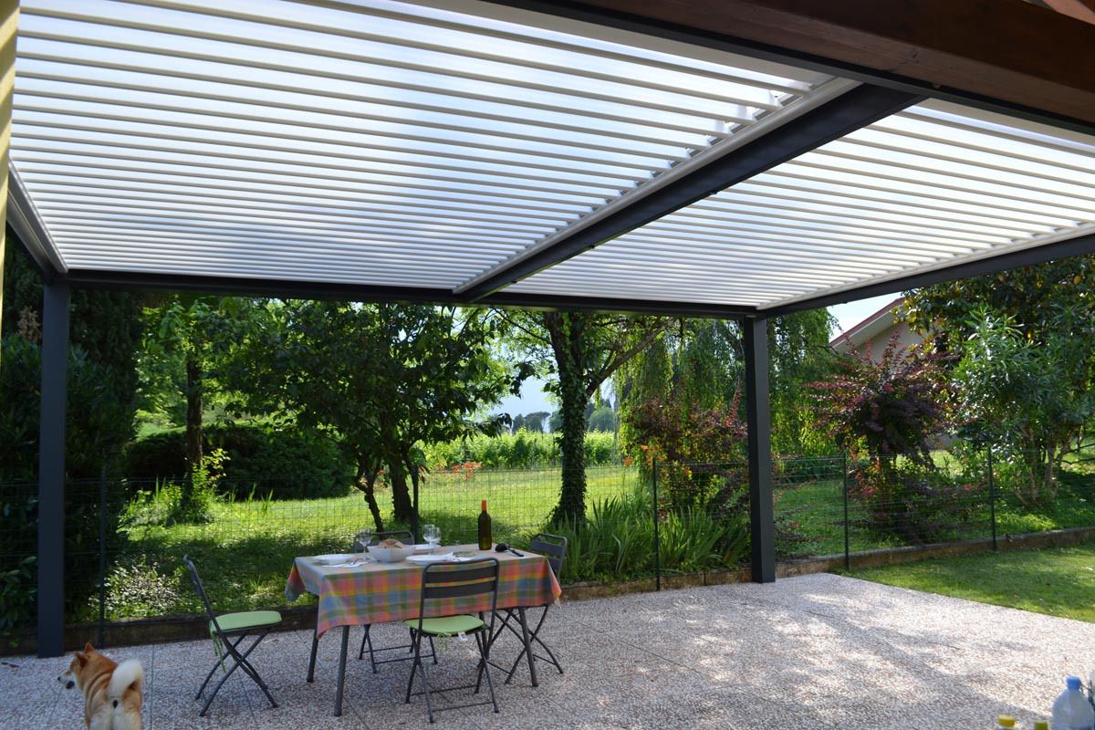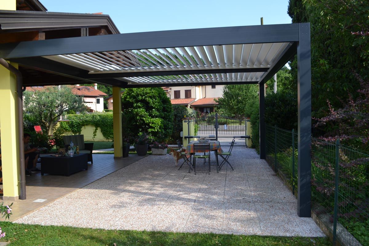 Pergola je sestavljena iz dveh polj vzporednih rotirajočih lamel z možnostjo naklona do 160°, ki omogočajo prilagoditev svetlobi in zračenju glede na vremenske razmere.