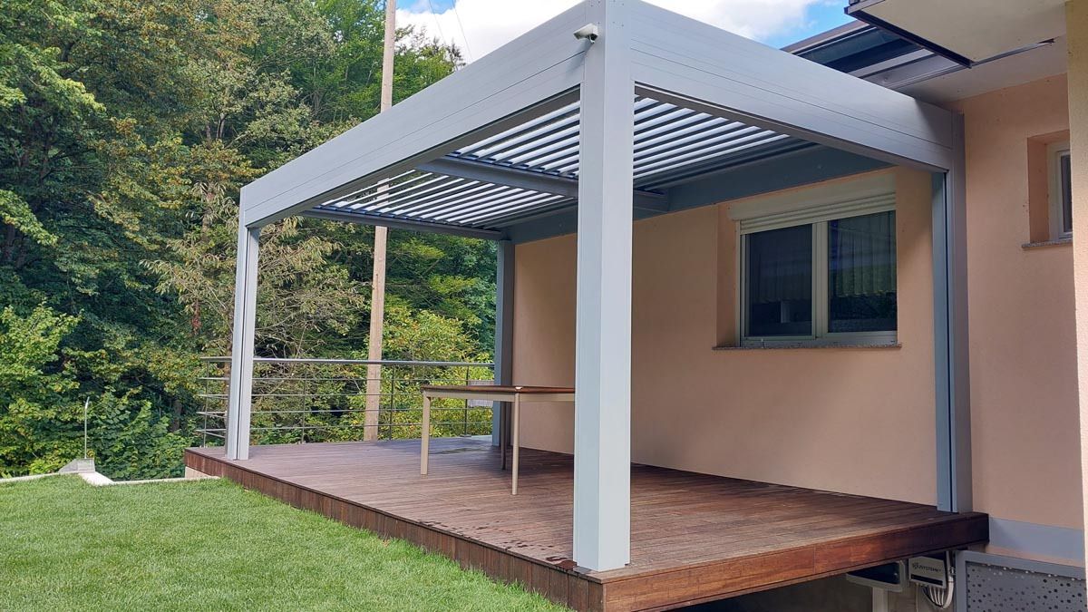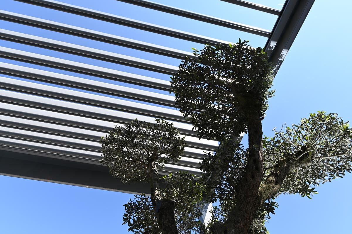 Pergola je sestavljena iz dveh polj vzporednih lamel, ki se lahko obračajo do 160° in tako omogočajo popolno prilagodljivost.