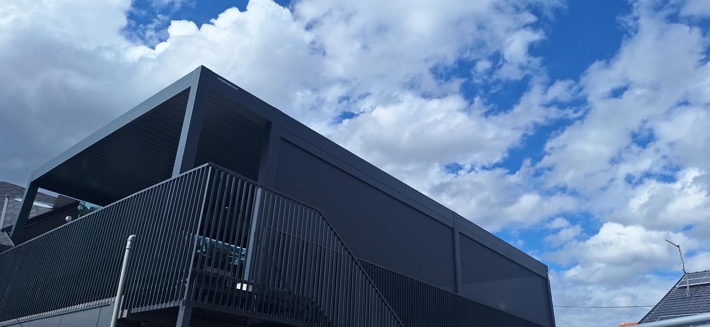 Elegantna bioklimatska pergola na prečudoviti terasi v Celju je sodoben in estetsko dovršen element, ki prostoru doda tako funkcionalnost kot vizualno vrednost. Izvedena je v antracitnem odtenku RAL 7016, ki se popolno ujema z arhitekturo objekta in dopolnjuje ambient terase ob bazenu.