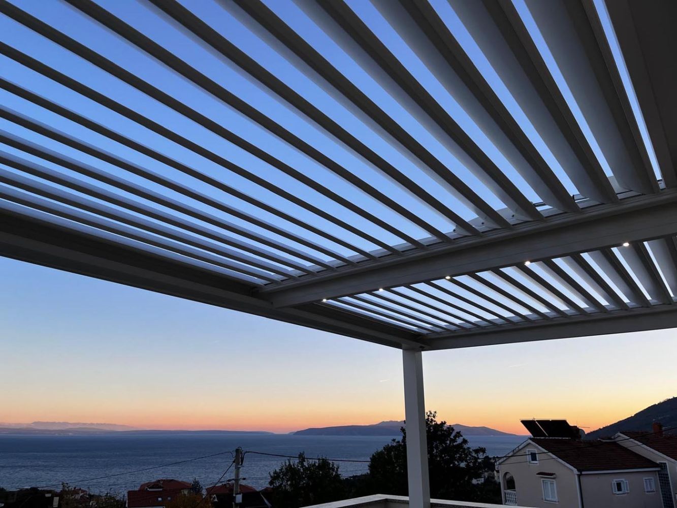 Za dodatno udobje in prijetno večerno vzdušje so v pergolo vgrajene LED luči, ki poskrbijo za ambient in funkcionalnost tudi po sončnem zahodu.