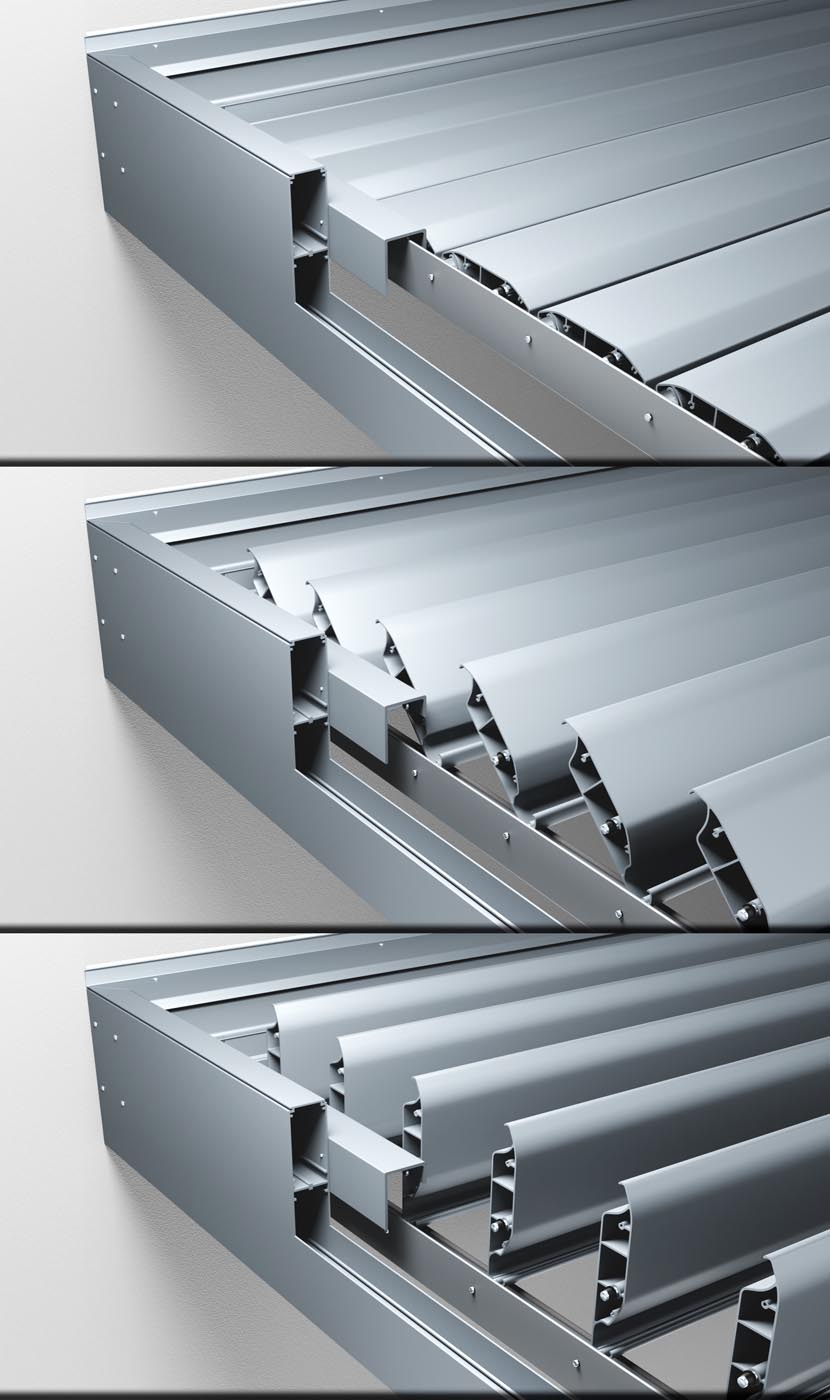 • The gutter moves synchronously with the louvers.