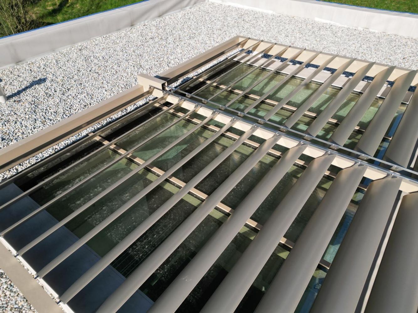 Horizontal layout optimizes protection from direct sunlight while maintaining an open-space feel and aesthetic terrace line.