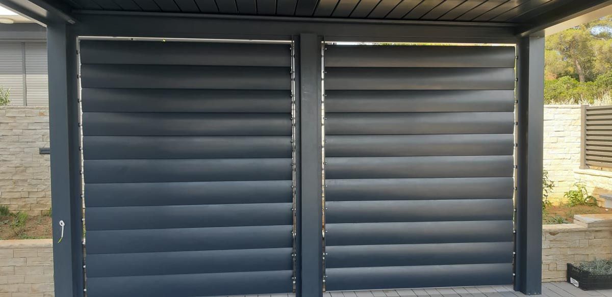 They can be operated via motor with a remote or manually, and the slats can be set at a fixed angle for perfect adjustment. In addition to shading, they provide privacy, enhance safety, and aesthetically complement modern architecture.