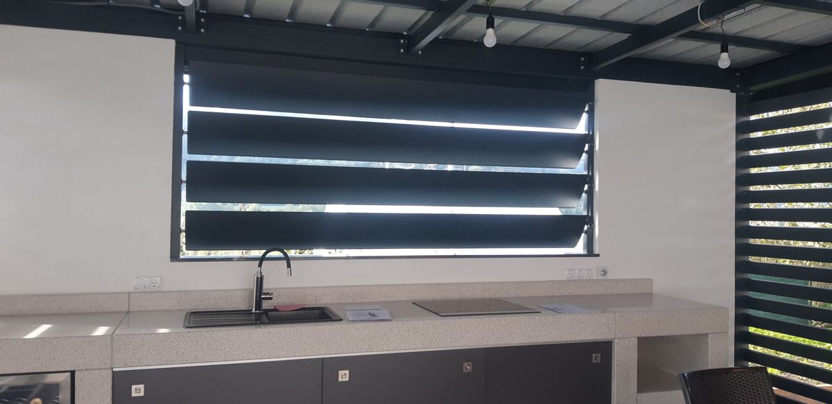 Sunbreakers B210 protect the summer kitchen, combining functionality with aesthetic refinement.