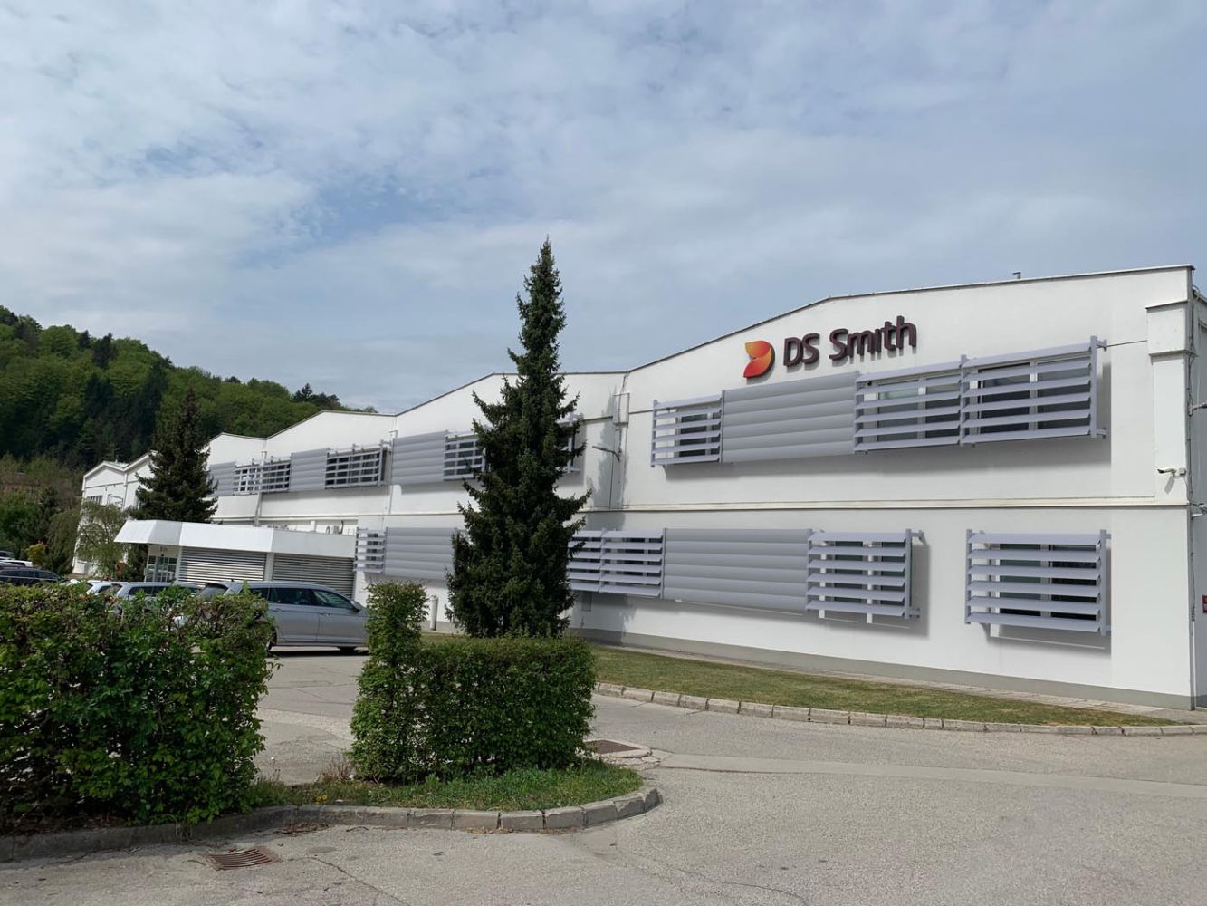 Sunbreakers B290 installed at DS Smith in Brestanica in modern silver RAL 9006 are a functional and aesthetic solution for window shading.
