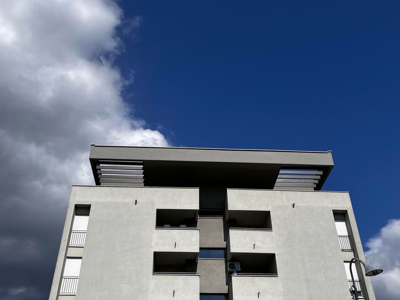 The project is truly special: the carefully designed sunbreaker layout gives the terrace a unique character, a premium feel, and a one-of-a-kind spatial experience.