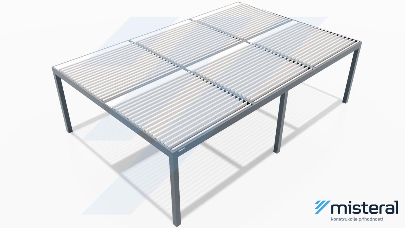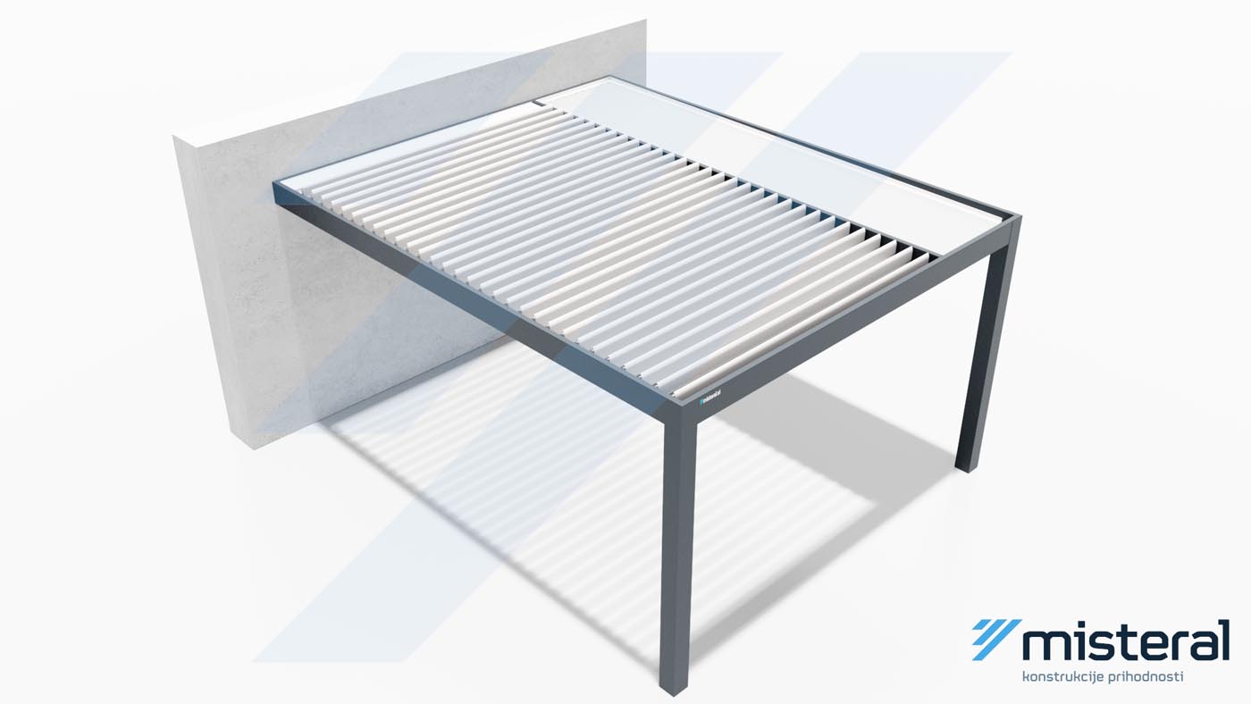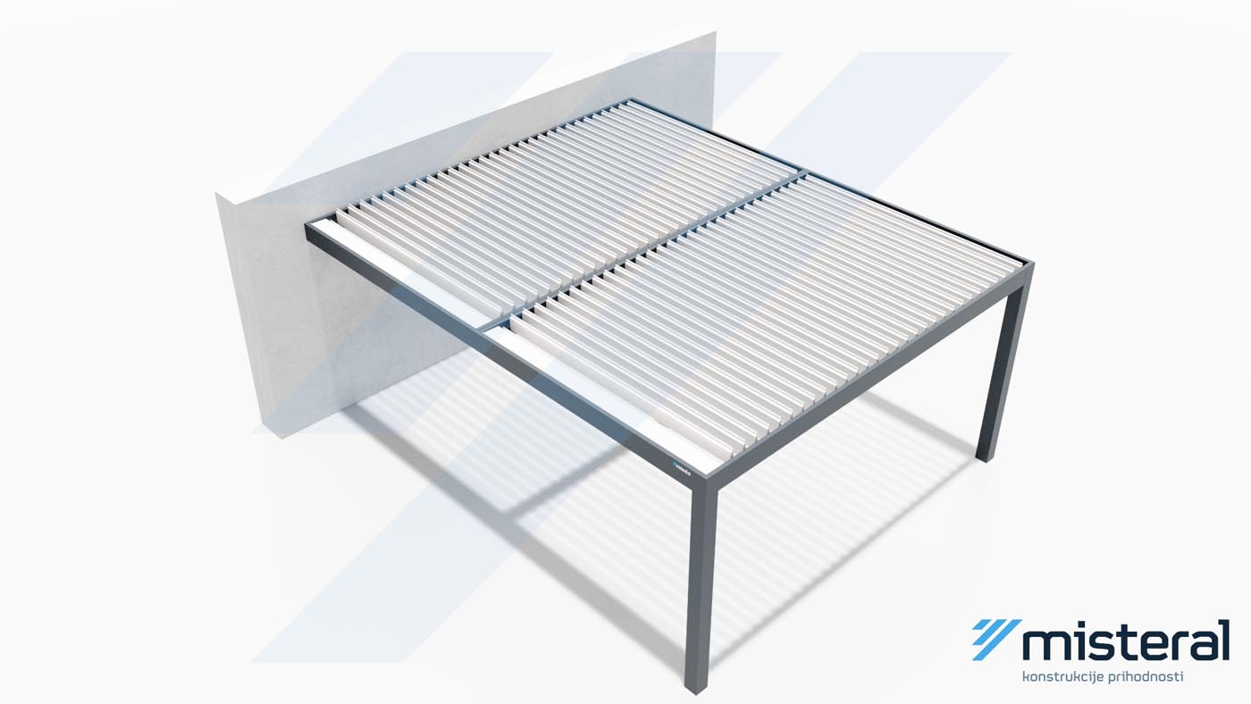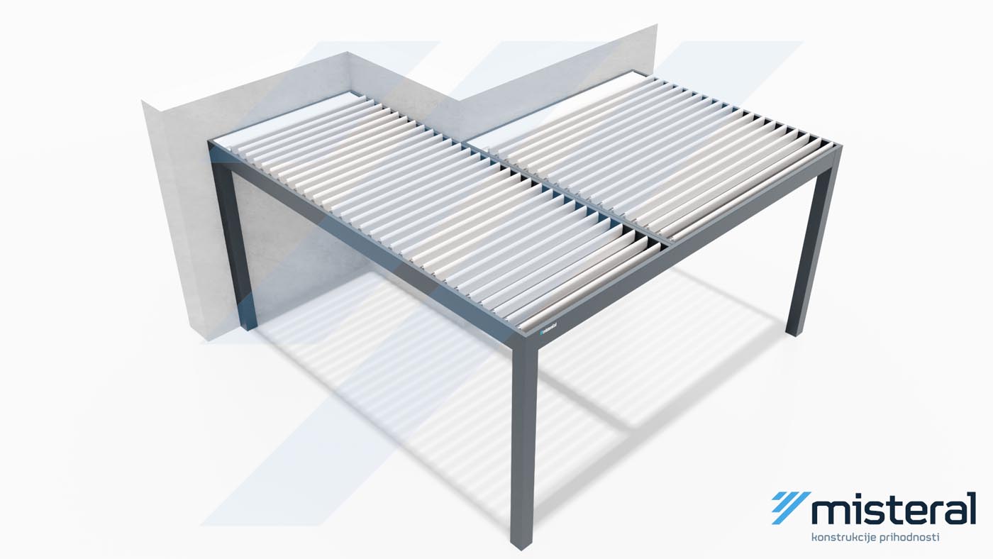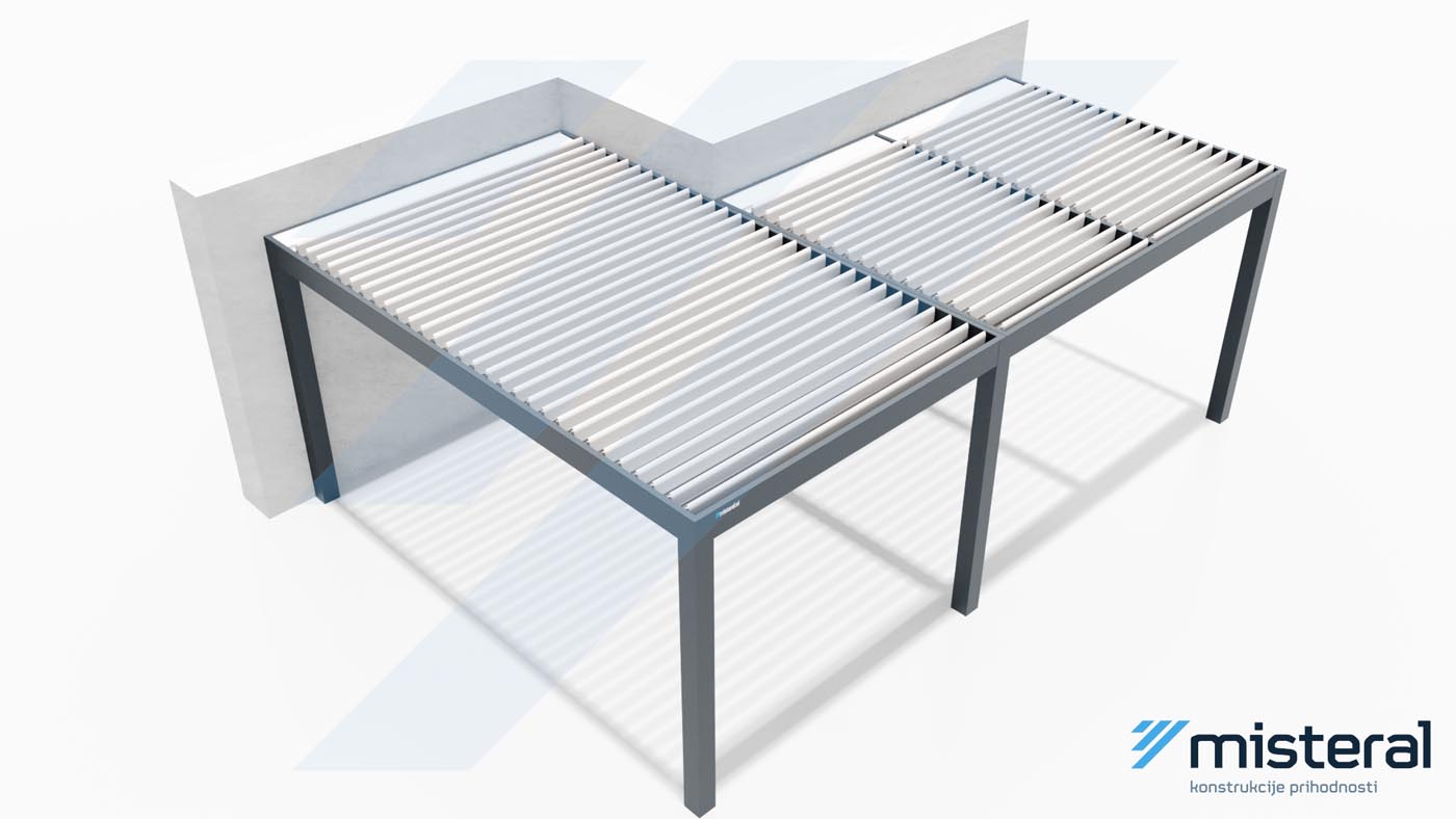 Technical Features - Bioclimatic PergolasMisteral Bioclimatic Pergola is a pergola that allows execution of pergolas with large spans and a minimal number of posts. We can create “regular” shapes (square and rectangular pergolas) as well as “irregular” shapes of bioclimatic pergolas, such as triangular shapes, etc.