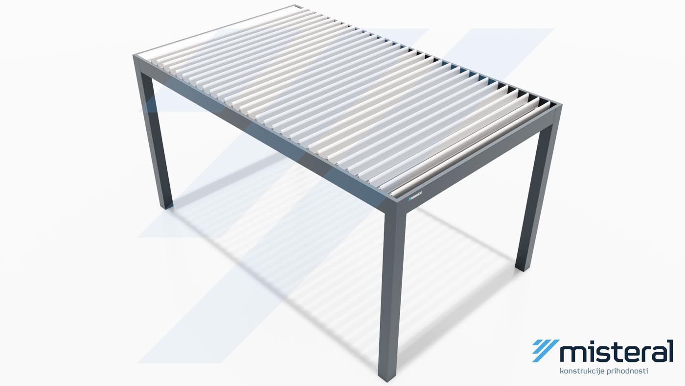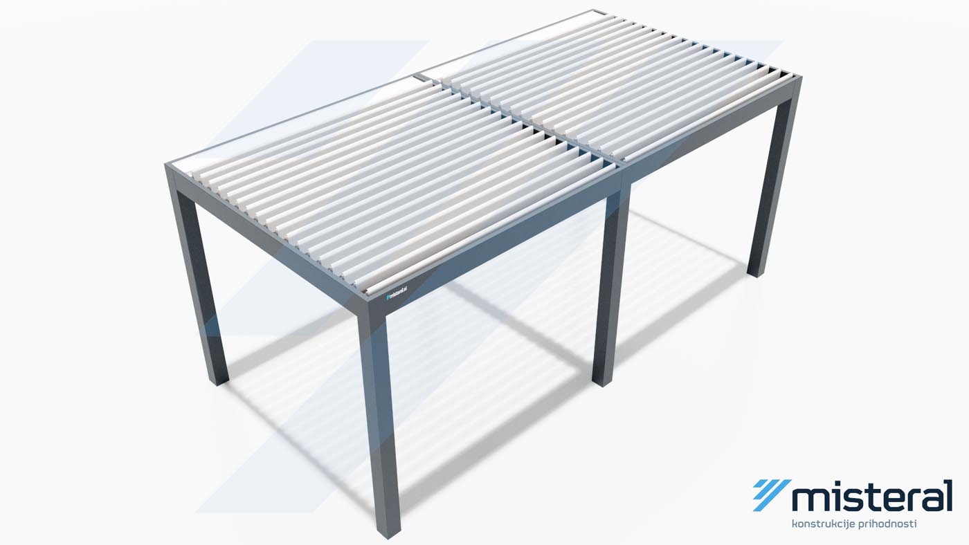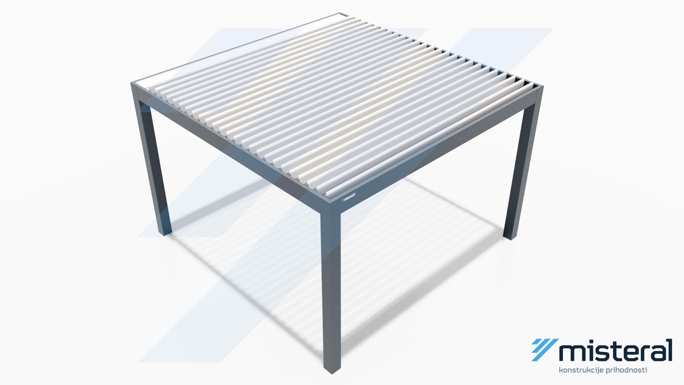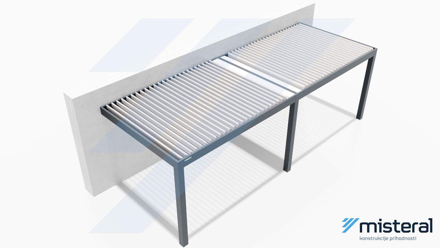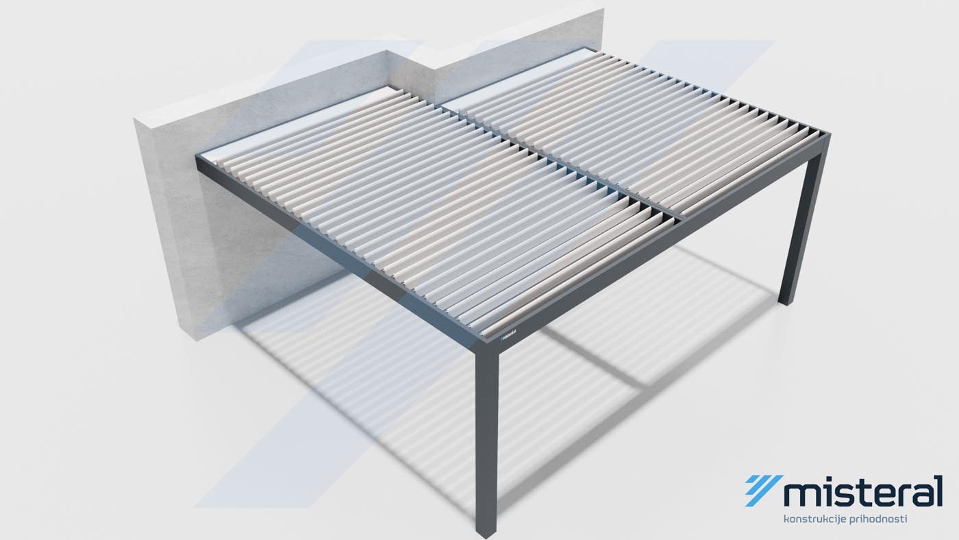 Technical Features - Bioclimatic PergolasMisteral Bioclimatic Pergola is a pergola that allows execution of pergolas with large spans and a minimal number of posts. We can create “regular” shapes (square and rectangular pergolas) as well as “irregular” shapes of bioclimatic pergolas, such as triangular shapes, etc.