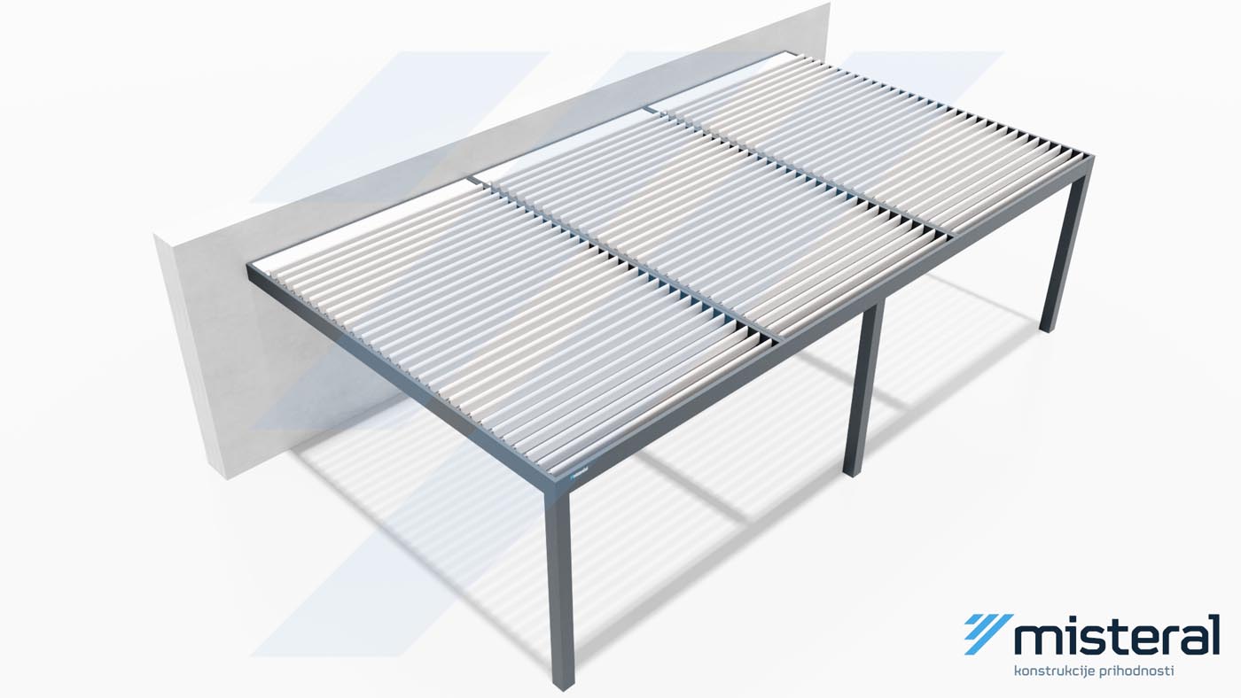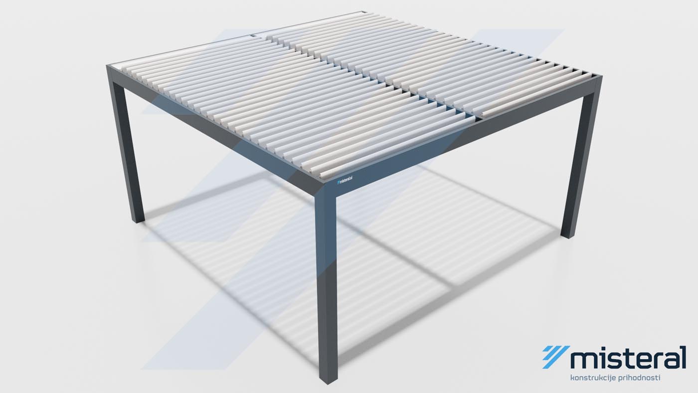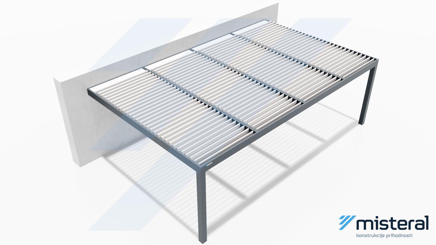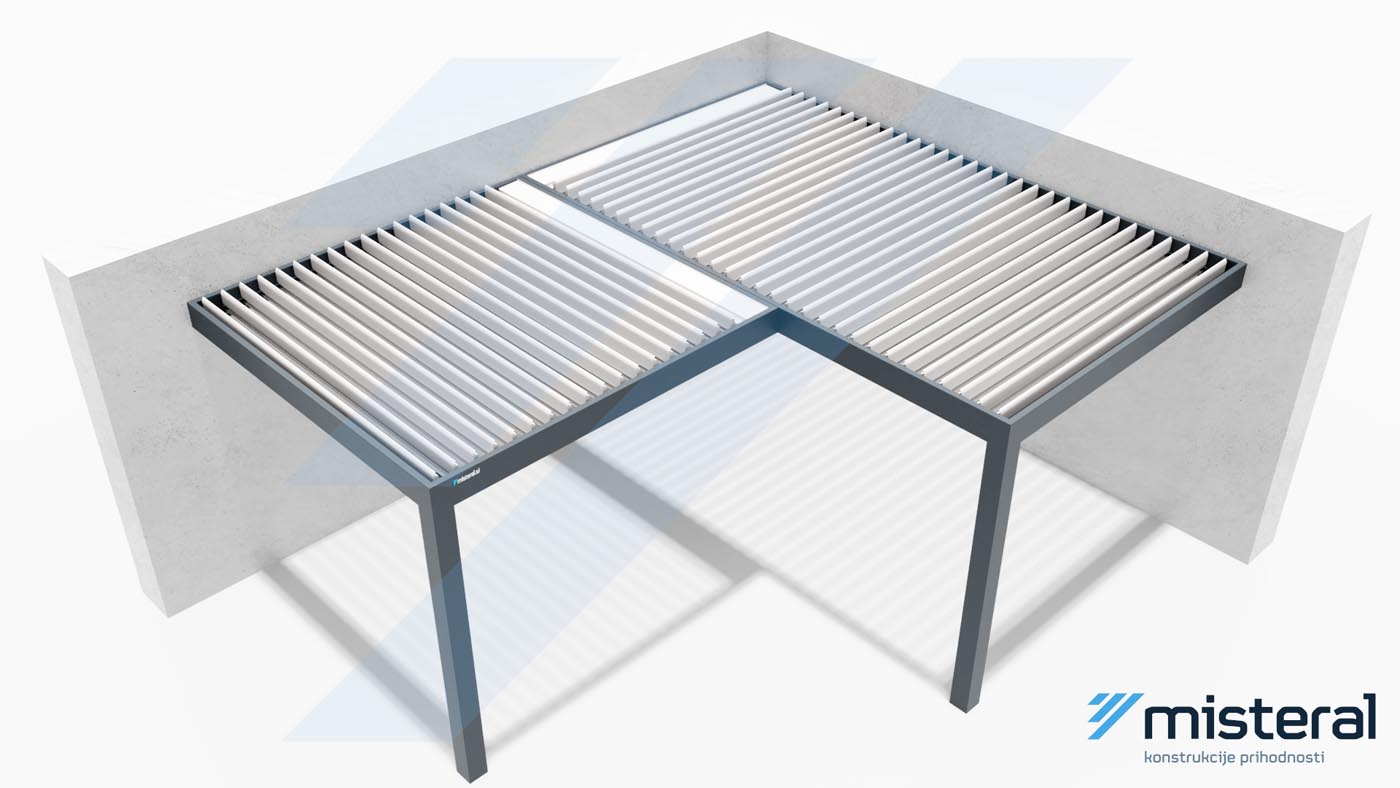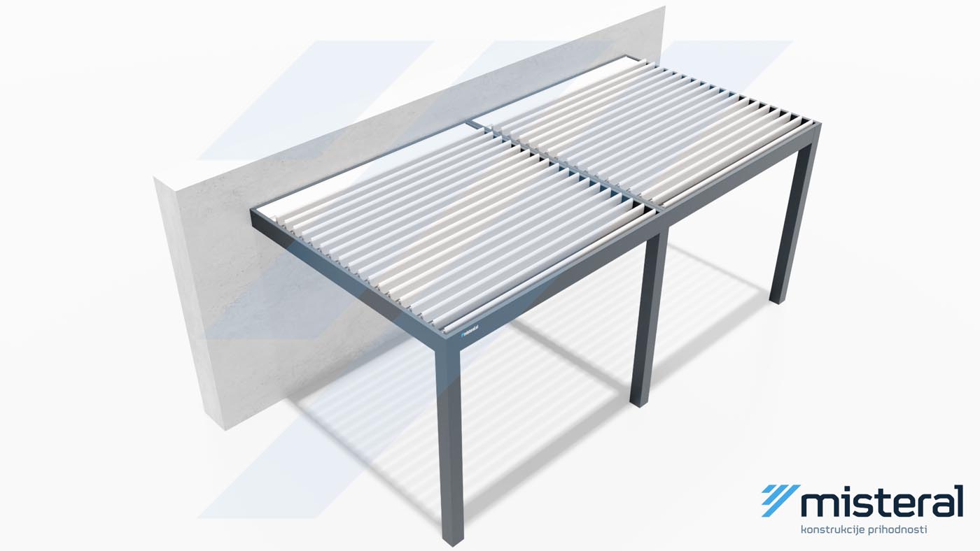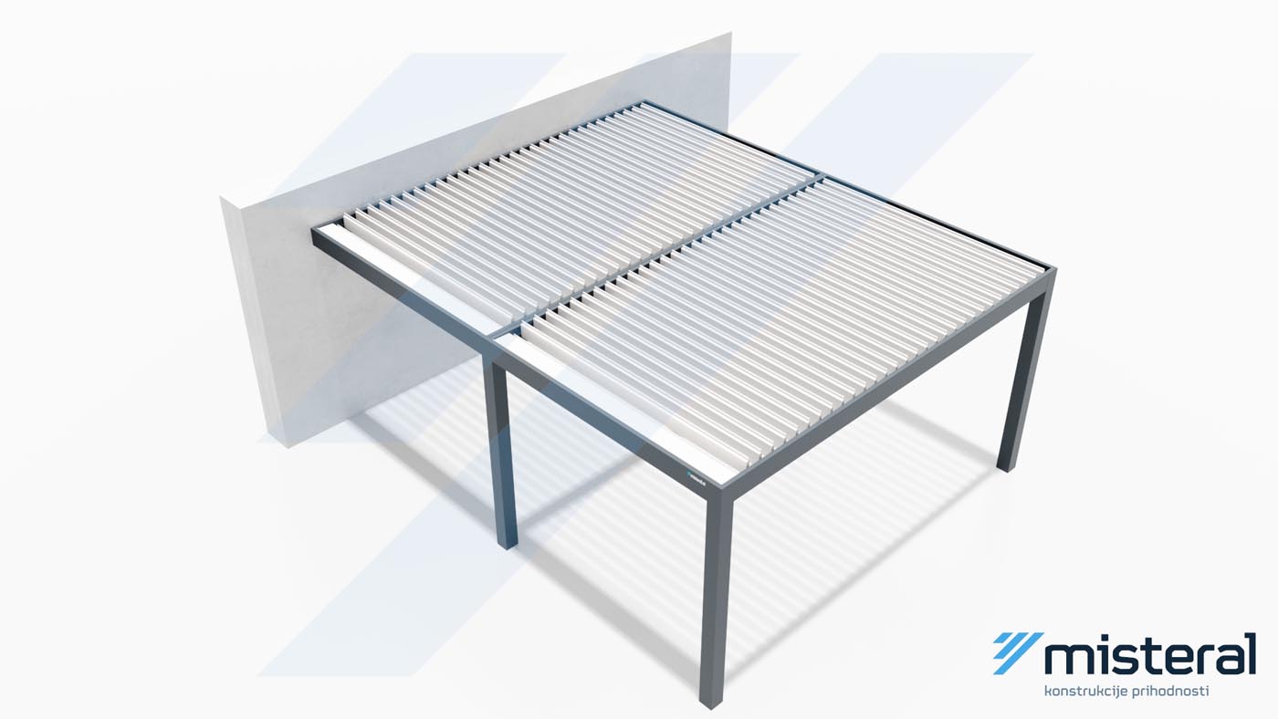 Technical Features - Bioclimatic PergolasMisteral Bioclimatic Pergola is a pergola that allows execution of pergolas with large spans and a minimal number of posts. We can create “regular” shapes (square and rectangular pergolas) as well as “irregular” shapes of bioclimatic pergolas, such as triangular shapes, etc.