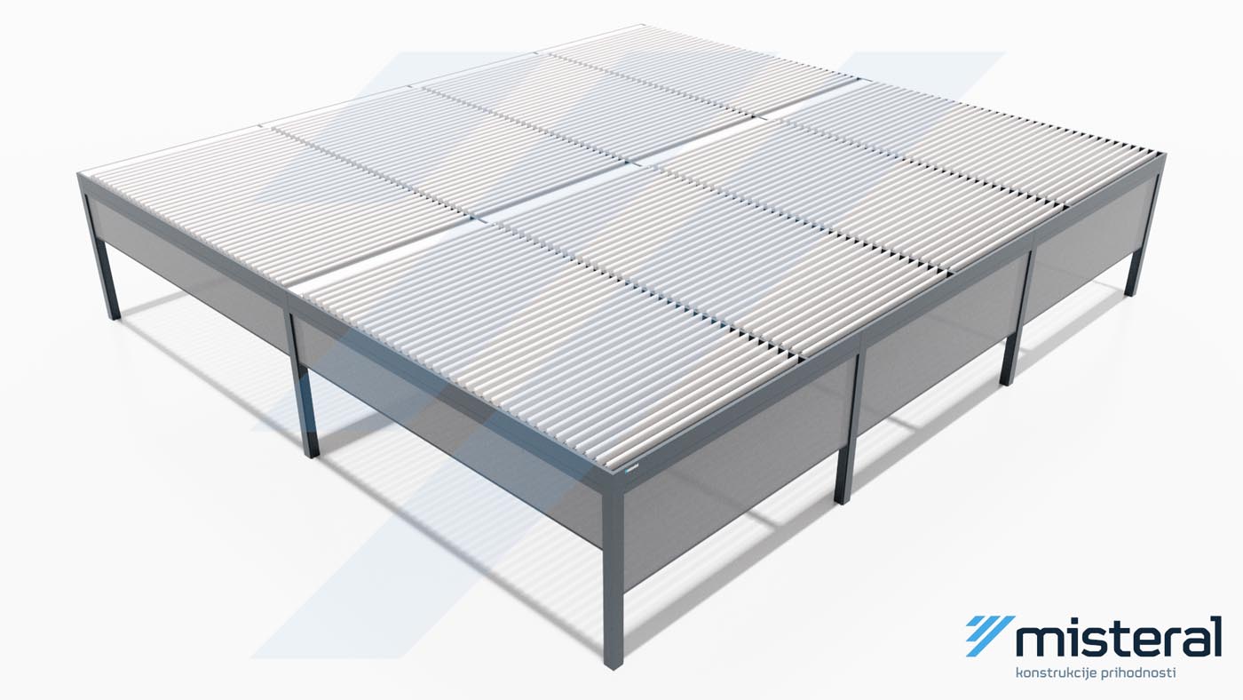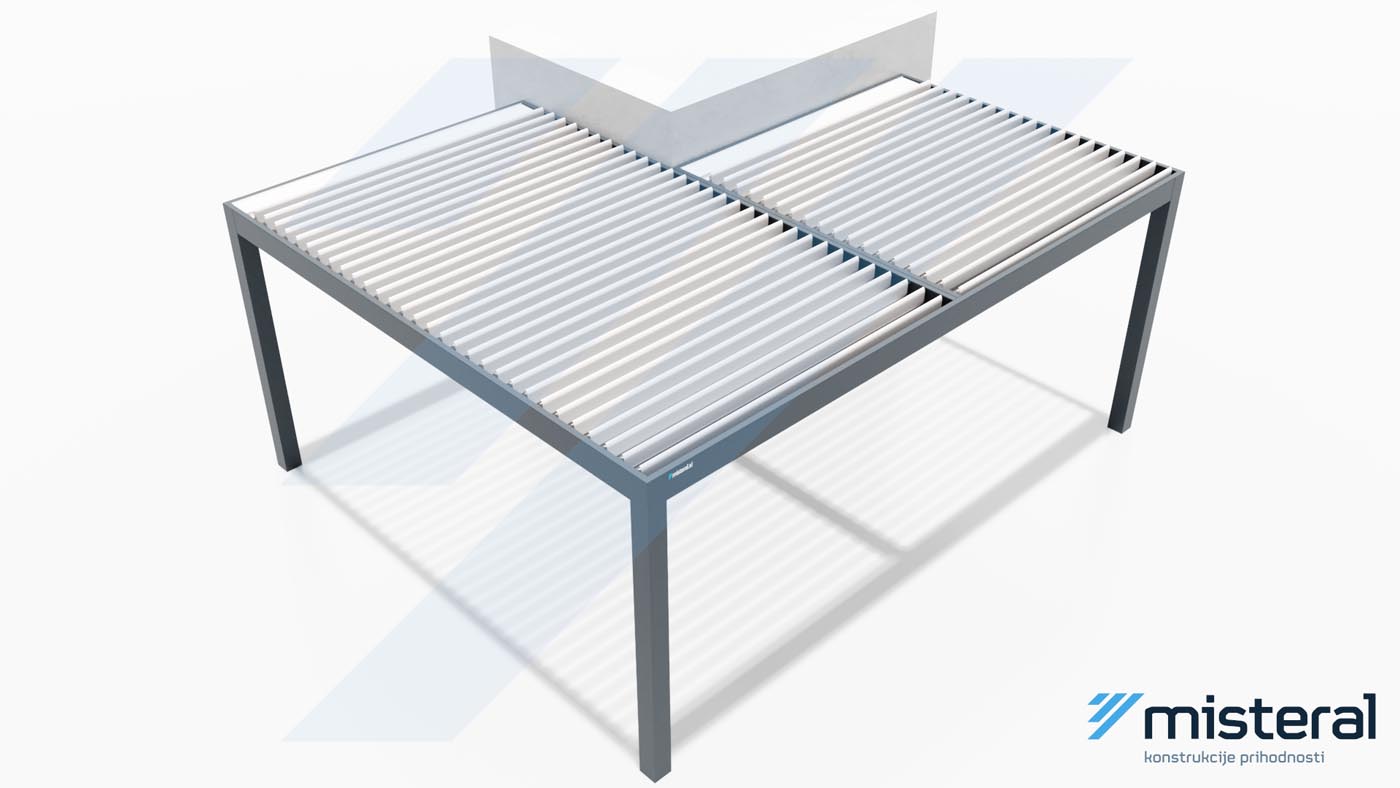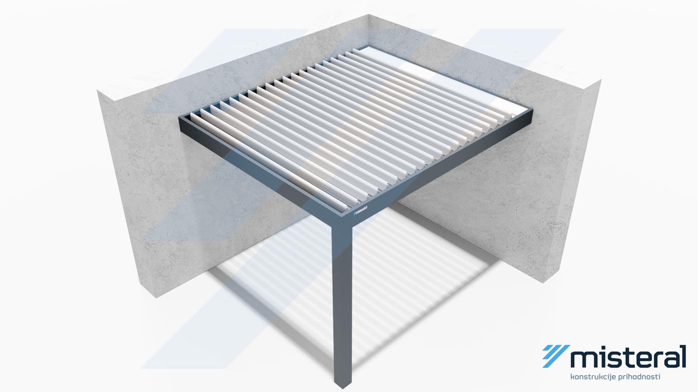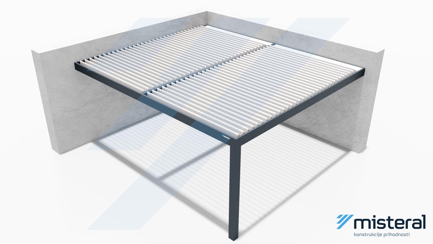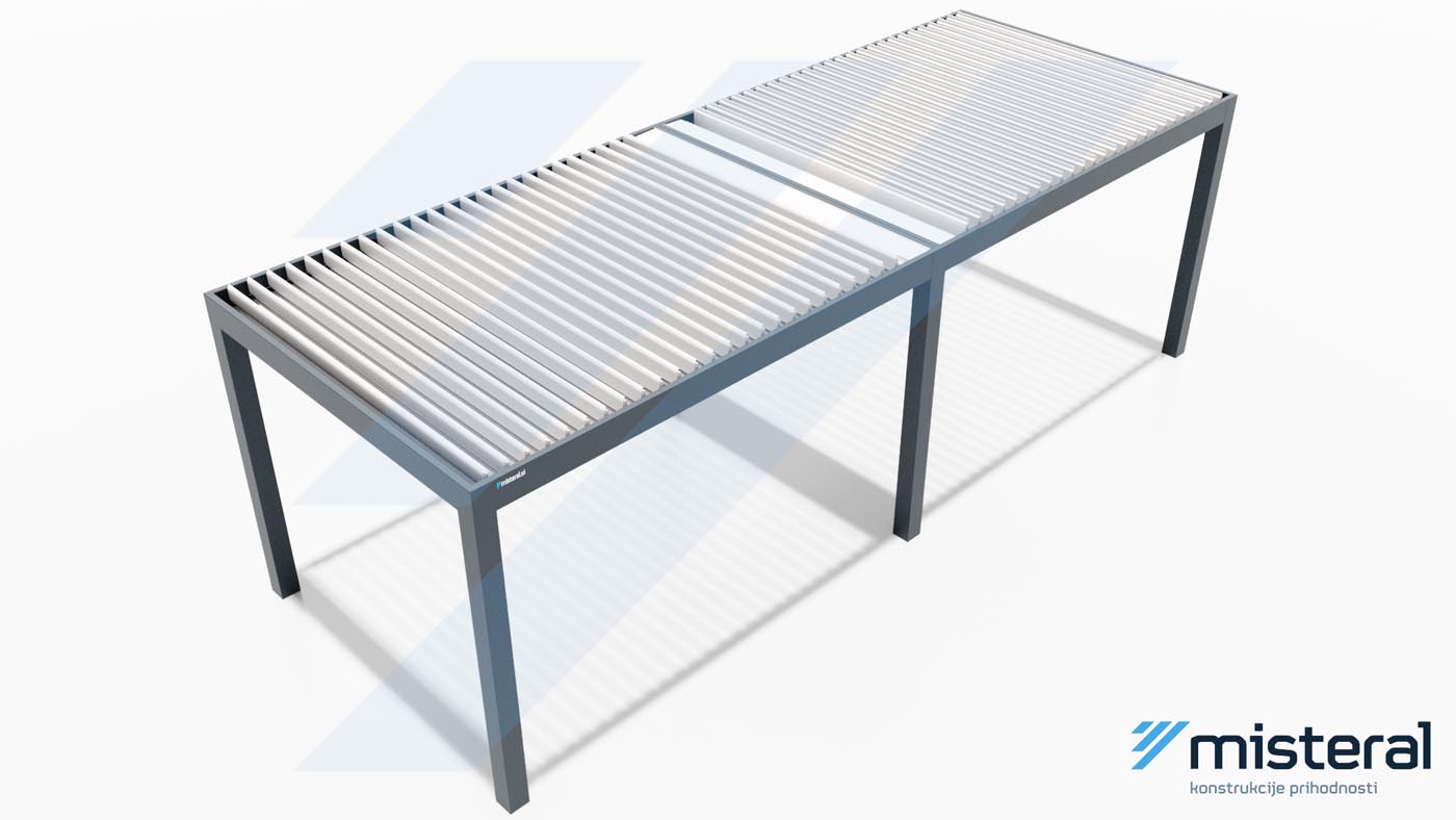 Technical Features - Bioclimatic PergolasMisteral Bioclimatic Pergola is a pergola that allows execution of pergolas with large spans and a minimal number of posts. We can create “regular” shapes (square and rectangular pergolas) as well as “irregular” shapes of bioclimatic pergolas, such as triangular shapes, etc.