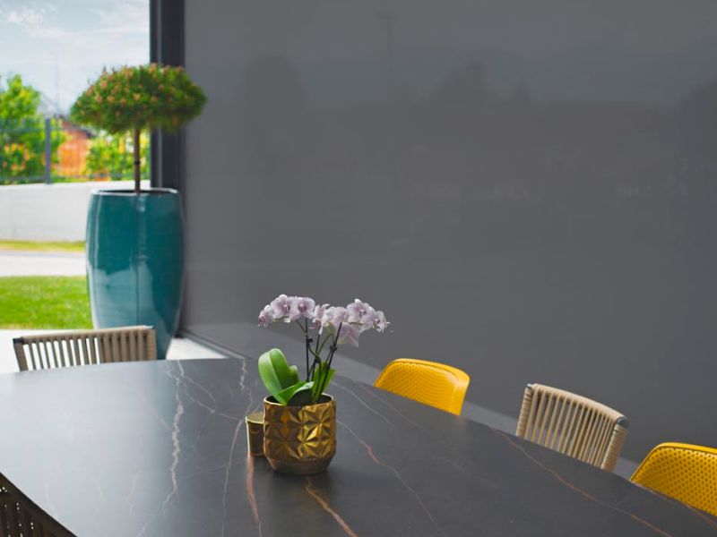 When designing external shading for large glass surfaces and pergolas, the key parameters are dimensional stability and wind load resistance. Misteral ZIP screen blinds are engineered as a technically advanced system for shading large spans (up to 6 x 3 m), ensuring optimal fabric tension without wrinkling.