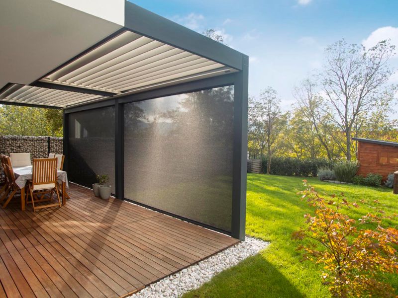 Special attention is given to the installation of blinds on bioclimatic pergolas, prioritizing structural strength over visual compromises.